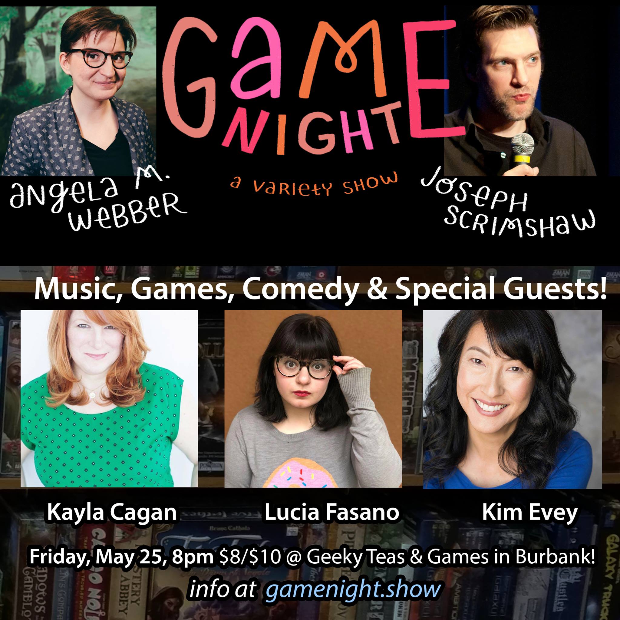 All inspired by the fun and community of playing games, Game Night is a variety show featuring music and comedy, AND a reason to put on pants and leave your home! The evening is created and hosted by Angela M Webber (The Doubleclicks, Catty Bs, Bridgetown) and Joseph Scrimshaw (Obsessed Podcast, Screen Junkies, RiffTrax) at Geeky Teas in Burbank!